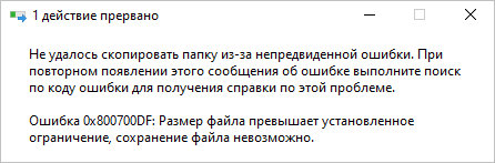 В Windows при попытке скопировать большой файл с папки webdav, мы можем получить ошибку «Ошибка 0x800700DF: Размер файла превышает установленное ограничение, сохранение файла невозможно.»: